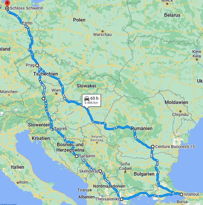 Die Route führt uns durch zahlreiche Länder der EU und durch Länder außerhalb der EU mit dem Ziel des Kontinentes Asien.